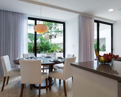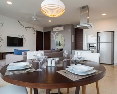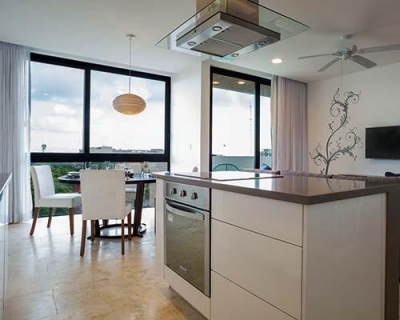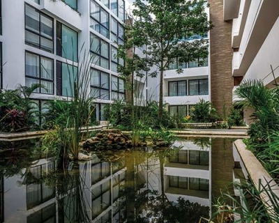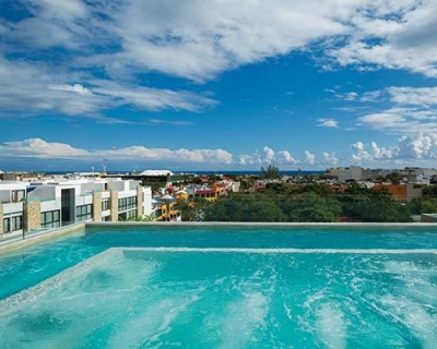 A-nah Playa del Carmen is located just a few blocks from Fifth Avenue, and only steps away from shopping, a wide variety of restaurants, and some of the best people-watching spots in the world. Accommodations are spacious one- and two-bedroom condominiums. Amenities on-site include a spa, gym, business center, yoga room, three whirlpool spas, a rooftop pool, front desk and concierge service, 24-hour security, elevators, gardens, handicapped-accessible facilities, open cinema, and parking.
