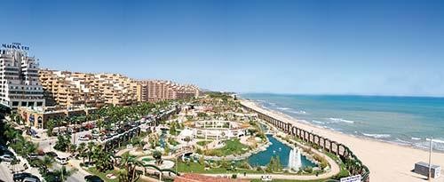 The apartments of Marina d'Or are part of the Marina d'Or Holiday Resort, an extensive tourist complex in the Valencia area. The self-catering accommodations are located on or just off the seafront on the coast of Castellón. An ideal destination for a family vacation, the property offers a seasonal outdoor pool and is surrounded by restaurants and cafes, leisure outlets, and major attractions. Within the development, you can also find Europe's largest seawater spa, with more than 39 services. Members are accommodated in two-bedroom front line sea view apartments.