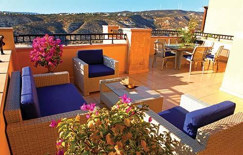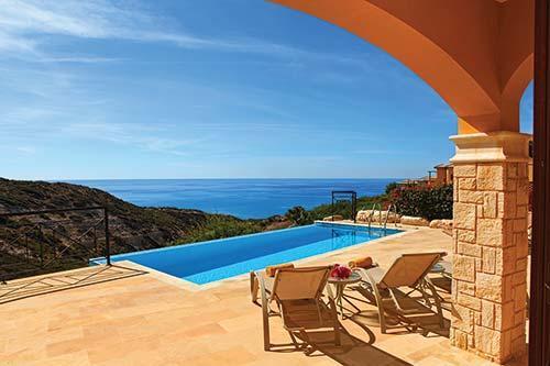 Aphrodite Hills Holiday Villas (each with its own private pool) are located within one of the most luxurious sports and leisure resort complexes in the Eastern Mediterranean. Situated in an area steeped in Cypriot culture, overlooking the place where Aphrodite, goddess of love, is said to have emerged from the waves. The resort offers a range of bars and restaurants, the award-winning Greco-Roman-style Retreat Spa, an 18-hole championship golf course and golf academy, the Annabel Croft Tennis Academy with multi-surface courts, two beach clubs, and nature and bike trails.