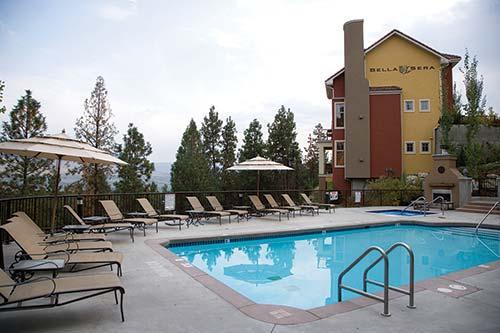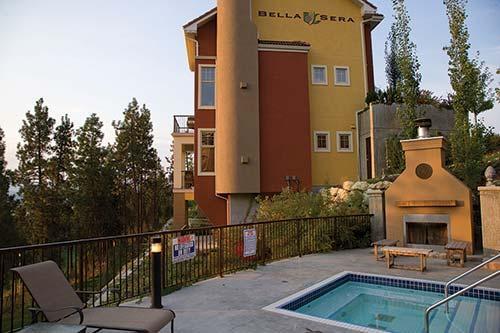 Bellasera Tuscan Villas and Piazza is a resort residence featuring 58 townhouses overlooking the second hole of the Quail Course of the Okanagan Golf Club. Bellasera offers owners and guests exceptional villas, an outdoor pool, a hot tub, a small fitness room, an entranceway fountain, and a central plaza, accented by Mediterranean-inspired landscaping. The villas feature Tuscany-style finishing, warm earth tones, and spectacular vistas.