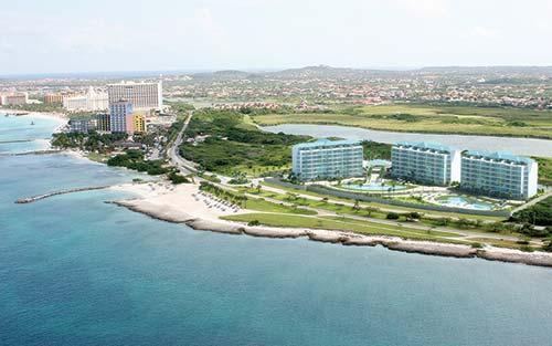 Blue Residences is a well-appointed beachfront residential complex with two-, three-, and five-bedroom ocean-view suites. Amenities include a wellness center and day spa, two infinity pools, and a snack and pool bar that also services the beach area. The resort's Eagle Beach location is within walking distance to fine and casual dining establishments and casinos. Some of the island's major hotels and the Robert Trent Jones II championship golf course are just a short drive away.
