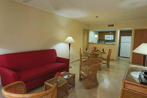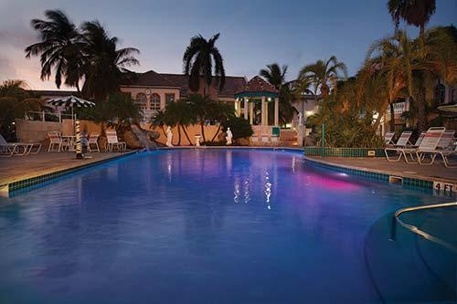 Caribbean Palm Village enjoys a peaceful and private setting, in the midst of a lush tropical garden. The resort offers two- and three-story condominiums surrounding two pool areas, each with a whirlpool. Among other on-site amenities are a restaurant and pool bar, tennis, and barbecue areas. Many nightclubs and casinos are less than a mile (1.6 kilometers) away.