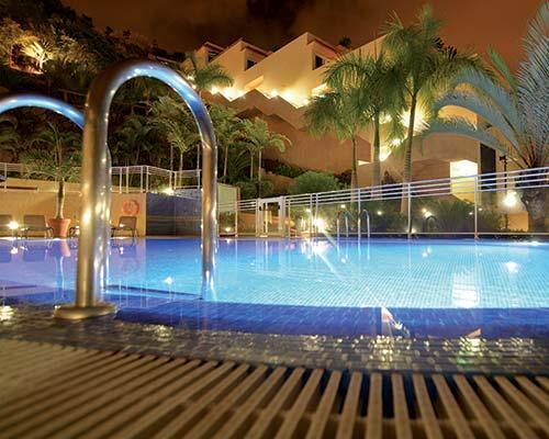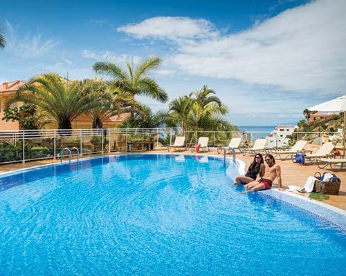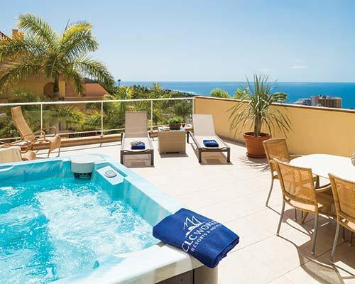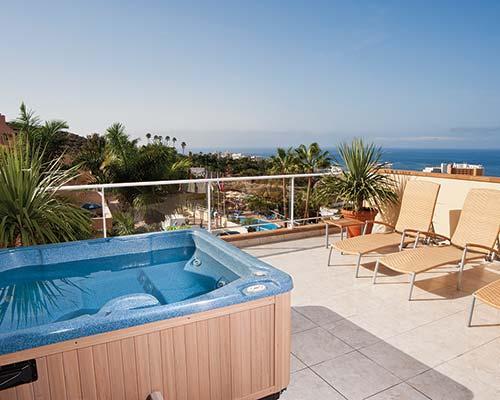 CLC Monterey Royale has the dramatic backdrop of Mount Teide, Spain's highest mountain, in the distance, and is surrounded by beautifully landscaped gardens with waterfalls, palm trees, and bougainvillea. Accommodations are spacious apartments with flat-screen televisions, electronic blinds, and a hydromassage bath. Each unit has a large private terrace with fabulous views over Playa de las Américas and the ocean.