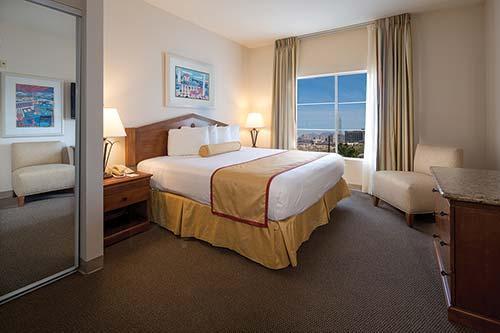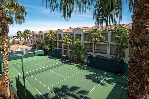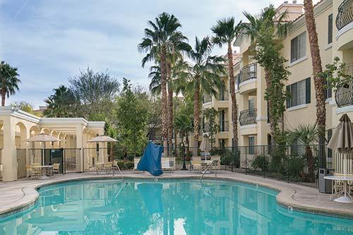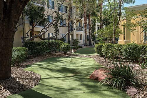 Located just 4 miles (6 kilometers) from the Las Vegas Strip, this French-Mediterranean-themed resort offers one- and two-bedroom suites with designer furnishings, a kitchen, washer, and dryer. Features include a cozy fireplace, televisions, DVD, stereo system, and a whirlpool tub in the master bath. The two-bedroom suites have a separate lock-off with a kitchenette. Amenities include two swimming pools, two whirlpools, a putting green, game room, barbecue facilities, two exercise rooms, a lighted tennis court, concierge activity desk, and transportation to and from the Strip.