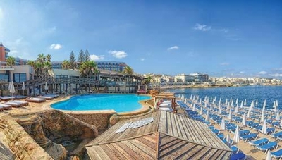 On the water's edge, Club Dolmen enjoys unobstructed views of St. Paul's Bay, as well as the islands of Comino and Gozo. The modern resort complex features on-site swimming pools, tennis courts, a gymnasium, two restaurants, a cafe, a cocktail lounge, casino, beauty spa, and a private beach for all water sports. The island offers boating and diving, as well as many archeological sites.