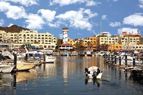 Beautifully appointed with Santa Fe-style architecture, the resort offers a charming marina ambiance and one of the best central locations, just steps from the excitement of downtown Cabo San Lucas. Accommodations are deluxe rooms and junior suites with Southwestern decor and traditional Mexican colors. On-site, enjoy pampering at the Aura Spa and a workout in a state-of-the-art fitness center, or take a taxi to the nearby Médano Beach. Experience what makes Cabo so famous: excellent dining, shopping, and nightspots such as Cabo Wabo and Mandala Club.