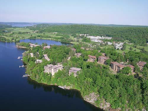 Deerhurst Resort is a complete recreational community on the banks of Peninsula Lake, north of Toronto. On-site amenities vary seasonally. They include up to four restaurants (seasonal), two 18-hole golf courses and a golf academy; an indoor sports complex with a pool, fitness room, climbing wall, and spa; and a waterfront with an inflatable waterpark (July/August only). Enjoy activities such as water sports, horseback riding, off-road tours, treetop trekking, paintball, tennis, dog sledding, sleigh rides, skiing and snowshoeing. All units are non-smoking and have stairs inside and outside.