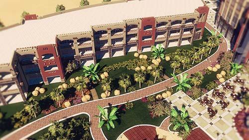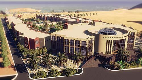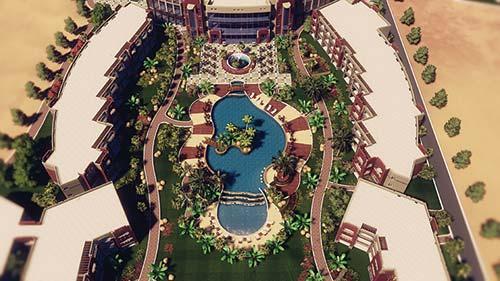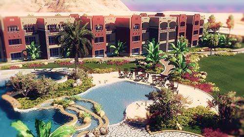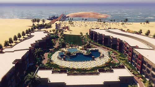 Dive Blue Beach Resort is built along a 1,600-foot (488 meters) stretch of beach and is located just 12 miles (19 kilometers) south of Marsa Alam International Airport. Upon completion, it will feature 326 spacious units, several large swimming pools, a water park, bars, restaurants, and shops.