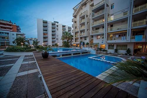 These vacation apartments are perfectly situated in the center of Salou with the famous seaside promenade and sandy beach only 100 meters (110 yards) away. Everything you could possibly want is within walking distance, including bars, restaurants, shops, water sports, and nightlife. The cities of Tarragona and Barcelona are both well worth a visit during your stay, while Salou's theme park, Port Aventura, is nearby and is another enjoyable day out. Many tourist amenties are seasonal.