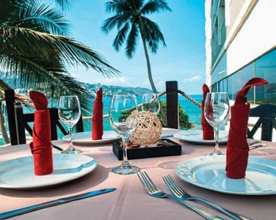 The resort is situated on the bay in Acapulco, nestled between the Pacific Ocean and Sierra Madre del Sur mountains, and a short distance from El Rollo Acapulco water park, La Quebrada cliffs, and the popular Caletilla beach. Accommodations have a flat-screen TV and Wi-Fi. Some units have balconies, and larger suites have a sofa bed and minibar. Relax on the sand, lounge by the pool, and enjoy dining at the three on-site restaurants. A variety of activities are available nearby, from biking and tennis to sailing and waterskiing.