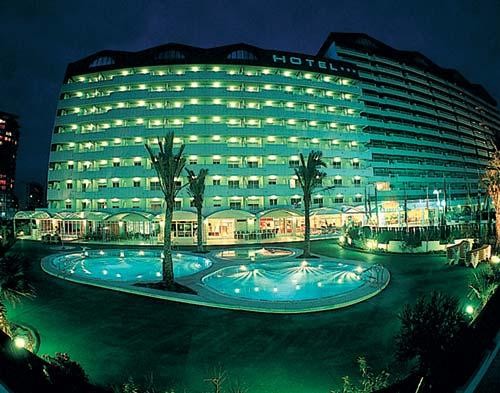 Reached by motorway from Alicante (40 miles/65 kilometers) or Valencia (70 miles/115 kilometers), the resort is located on Levante Beach. A walk along the picturesque Paseo Marítimo leads to the Peñón de Ifach nature park. On-site facilities include soundproofed discotheque; fitness center with sauna, whirlpool, ultraviolet lamps, and massage; a souvenir shop; and a boutique.