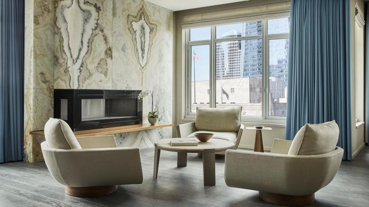 A polished steak restaurant/bar by renowned chef Wolfgang Puck is on-site. Breakfast is extra. Other amenities include a heated indoor lap pool and a posh spa. A gym and a business center are open 24 hours. Valet parking is available.
