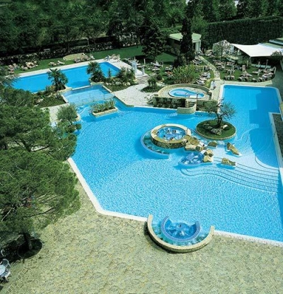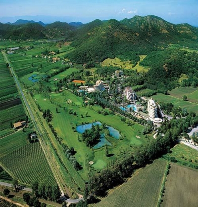 Located in the spa town of Galzignano Terme near Padova, the resort offers panoramic vistas across the Euganean Hills. Accommodations feature free Wi-Fi and a LCD TV, and some have a private balcony or terrace with views of the hills, golf course, or tennis courts. Amenities on-site include Naiades Mediterranean restaurant and a 9-hole golf course with driving range. Guests enjoy free parking and complimentary access to thermal indoor and outdoor pools and relaxation areas with a sauna. Venice is less than 40 minutes away by car.