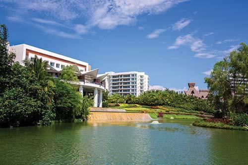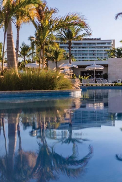 Set between the Sierra Madre mountains and Banderas Bay, Grand Bliss Nuevo Vallarta is a modern haven surrounded by beautifully landscaped grounds. The resort hosts daily activities for the whole family, from beach volleyball and pool games to cooking classes and blackjack tournaments. Guests can swim in secluded pools overlooking the ocean, play golf on the Jack Nicklaus-designed course, and enjoy a memorable meal at one of the property's many fine dining restaurants. The resort has nightly performances with live music and a light show over the lake.