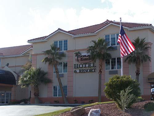 Within easy driving distance of national parks in both Nevada and Utah, Highland Estates Resort offers quality amenities, an accessible location, and outstanding service. The property is surrounded by championship golf courses and boasts close to 310 days of sunshine a year. Amenities include two swimming pools, a hot tub, tennis court, shuffleboard courts, a fitness room, and evening dining at the on-site restaurant. Mesquite hosts four full-gaming casinos, and nearby spa facilities are available for visitors to relax and rejuvenate.