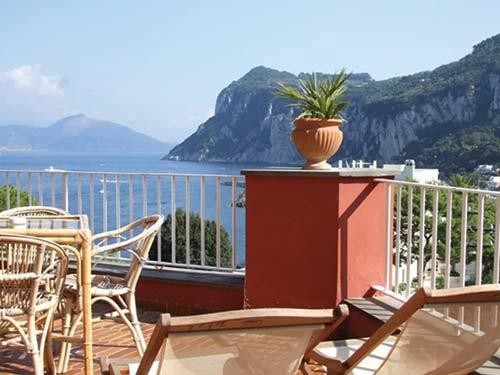 Built on a clifftop overlooking the sea, Hotel Bristol is the only resort on this rocky island to claim direct beach access, via staircase built into the cliffside. The resort's own restaurant is renowned for its seafood specialties, or, alternatively, guests may stroll into central Capri to experience the town's jet-set ambiance and excellent shopping and dining opportunities.
