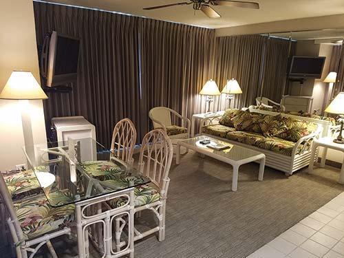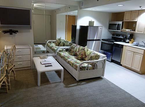 Imperial Hawaii Vacation Club in Waikiki is close to the beach, shopping, restaurants, and nightclubs. The resort has a rooftop swimming pool, 26-floor owners' lounge, 24-hour restaurant, and convenience shops in the lobby. All units feature DVD players, coffee makers, microwave ovens, and refrigerators. Most one- and all two-bedroom units come equipped with full kitchens. Guests can unwind at the saunas after exercising in the extensive fitness room.