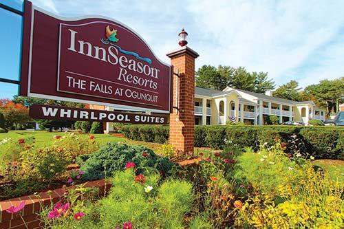 InnSeason Resorts - The Falls at Ogunquit offers 76 beautifully appointed one- and two-bedroom suites in a charming Maine seaside town. Guests will enjoy a year-round indoor heated pool, sauna, and fitness room, and have the opportunity to meet new friends at the barbecue and children's play areas. Units include a whirlpool bath; living room with fireplace (non-heating), sleeper sofa, and cable television; and a convenience kitchen with a microwave and refrigerator. The resort is located on Ogunquit's famous trolley route, only minutes from the beach, restaurants, summer playhouse, and quaint village center of Ogunquit.