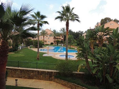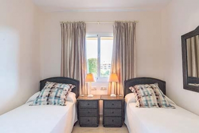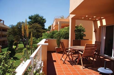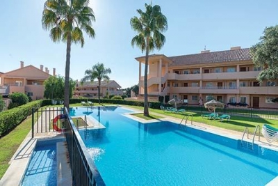 Situated on the east side of Marbella next to the Santa Maria Golf and Country Club is the beautiful Jardines de Santa Maria Golf complex. The charming, estate-like community boasts an outdoor pool and tropical gardens, and is within close proximity to beaches, restaurants, and shopping centers. Each two-bedroom apartment features two bathrooms, a lounge/dining room, kitchen, and a large furnished sun terrace overlooking the pool, gardens, or forested areas.