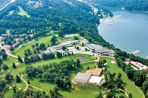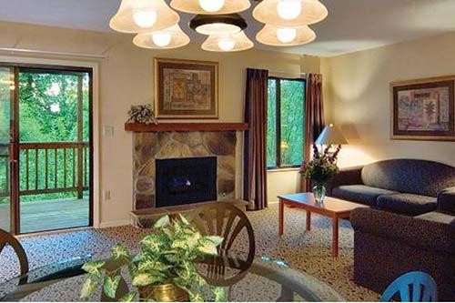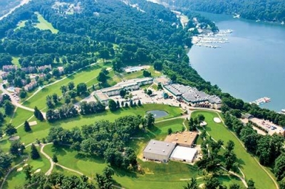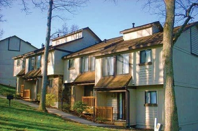 These townhouses are set in the hills of northern West Virginia, overlooking Cheat Lake and bordering two 18-hole championship golf courses. On-site amenities include two restaurants and a lounge, swimming pools, tennis courts, a full-service spa and salon, and an adult fitness and sports center (for guests aged 16 and older to utilize). Major ski areas are just an hour away.