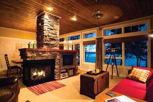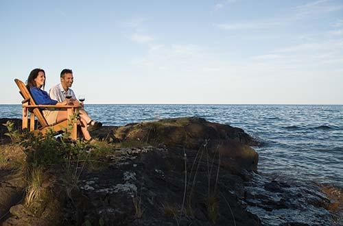 Larsmont Cottages on Lake Superior offers two- and three-bedroom chalet-style units with cathedral ceilings, well-equipped kitchens, modern bathrooms, and handsome fireplaces. The resort boasts a heated swimming pool, outdoor whirlpool, wood-fired Finnish sauna, exercise room, and lakeside massage cottage with two therapy rooms. A lodge with a full-service restaurant, bar, library, and covered outdoor veranda serves as a gathering place for guests.