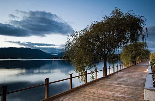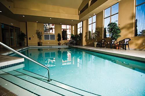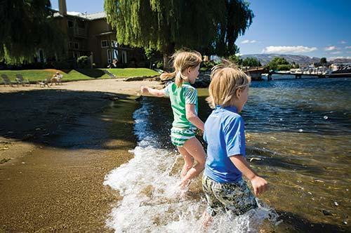 Manteo Beach Club is located on the shores of Okanagan Lake, only minutes from downtown Kelowna, championship golf courses, and world-class wineries. Indoor/outdoor pools and hot tubs, a water park, steam rooms, saunas, a movie theater, fitness center, tennis court, putting green, playground, private beach, and a marina that provides water sports and boat rentals are all available to guests. Accommodations include two- and three-bedroom villas and hotel suites. The resort also features a year-round waterfront restaurant with a seasonal patio.
