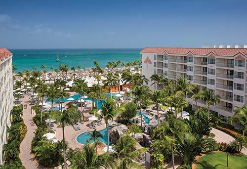 Set along the pristine Aruba shoreline, Marriott's Aruba Ocean Club features oceanfront or ocean-view villas, all with a Caribbean flair. Guests will enjoy villas with a private balcony, whirlpool tub, and in the one- and two-bedroom units, a fully equipped kitchen, while spacious guest rooms feature convenient kitchenettes. The adjacent Aruba Marriott Resort and Stellaris Casino features gaming, fine dining, and many other amenities. Aruba's mainland offers a diverse selection of activities, from water sports to horseback riding, and fabulous shopping.