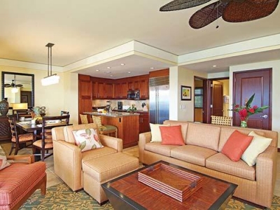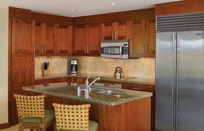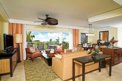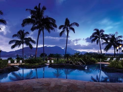 Marriott's Kauai Lagoons offers two- and three-bedroom villas in a resort setting, tucked away within a secluded, master-planned community. The property features more than 500 acres (202 hectares) of lush tropical foliage, wildlife, and sparkling waterways. Units have separate living and dining areas, fully equipped gourmet kitchens, and a private balcony or lanai, with picturesque ocean or island views. There is a 27-hole Jack Nicklaus signature golf course nearby. Guests also have access to the amenities at the adjacent Kauai Marriott Resort, including a spa, tennis courts, and multiple restaurants.