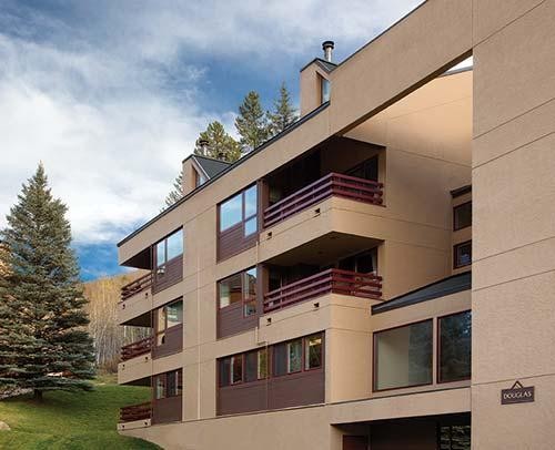 StreamSide is located just 2 miles (3 kilometers) from Vail's international village and ski slopes, which can easily be reached by StreamSide shuttle service. The Evergreen (MEV), Douglas (MDO), and Birch (MVB) buildings offer contemporary studio, one- and two-bedroom accommodations. On-site recreation includes an indoor/outdoor pool, whirlpool spas, sauna, steam room, and racquetball court. Featured are the Evergreen and Douglas buildings and clubhouse. Only the units in the Evergreen building are air-conditioned. Because of the mild summer climate, guest rooms and public areas at StreamSide at Vail are not air-conditioned.
