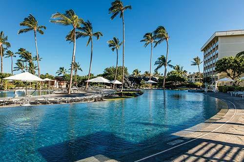 Overlooking Anaeho'omalu Bay on the Big Island of Hawaii, Marriott's Waikoloa Ocean Club sits nestled amid lush green landscaping and beautiful white-sand beaches. Spacious one- and two-bedroom suites feature modern design and furnishings. Separate living and dining areas, washer/dryers, LED TVs, and complimentary Wi-Fi provide the comforts of home. On-site amenities include a beach, three swimming pools, a spa, restaurant, and fitness center. Golf enthusiasts can enjoy a game nearby at the Waikoloa Beach Resort Golf.