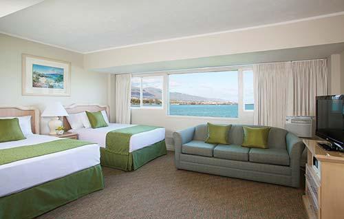 Maui Beach Hotel is situated on the shores of Kahului Bay in downtown Kahului. Accommodations are beautifully appointed rooms and suites with island-style decor and ocean, garden, or city views. Amenities on-site include a restaurant, lounge, a swimming pool with a sundeck, a fitness center, and a complimentary airport shuttle. The resort is just minutes from Kahului Airport, beaches, golf courses, and shopping.