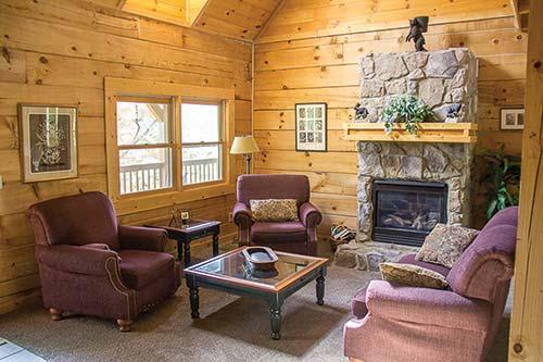 Mountain Shadows Resort is located across from Great Smoky Mountains National Park. Surrounded by picturesque scenery, accommodations are one- to six-bedroom log cabins with amenities including a hot tub, full kitchen, fireplace, gas grill, central air conditioning and heating, and cable TV. Some units also have a whirlpool bath, game room, and home theater. On-site are amenities such as an outdoor pool with waterfall, a clubhouse, and outdoor pavilion. The resort is 3 miles (5 kilometers) from downtown Gatlinburg, close to Great Smoky Arts & Crafts Community, and just minutes from Pigeon Forge.
