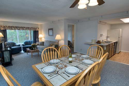 The Mountainside Resort at Stowe is nestled on a mountainside close to the village. The resort offers completely furnished one- to four-bedroom units with fireplaces, fully equipped kitchens, decks, and spectacular views. Free Wi-Fi is available. Units have DVD players and HDTV. The central building houses an indoor pool, hot tub, sauna, fitness room, and laundry. The complex is just minutes away from downhill and cross-country skiing, bike paths, a gondola, hiking trails, shopping, and dining.