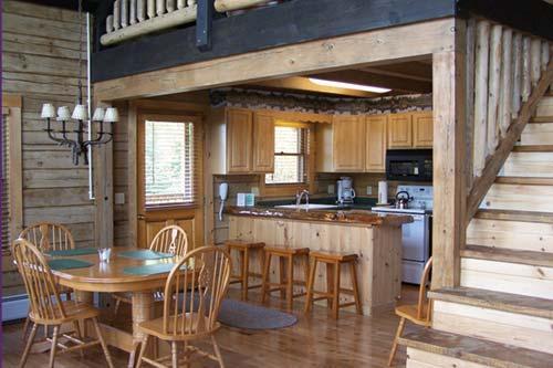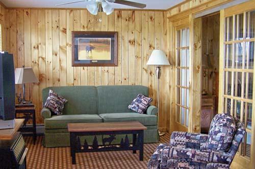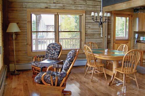 This resort is a four-season recreation destination with both individual log homes and units in the main lodge. Springtime - fishing is some of the best in the Northeast. Summer - moderate temperatures, perfect for water sports, rafting, hiking, ATV riding, or mountain biking. Fall - a spectacular palette of colors ushers in the hunting seasons. Winter - cross-country skiing, ice fishing, and snowmobiling on hundreds of miles of groomed trails. One-bedroom units have air conditioning and are not individual log homes. Cabins have whirlpool baths and fireplaces.
