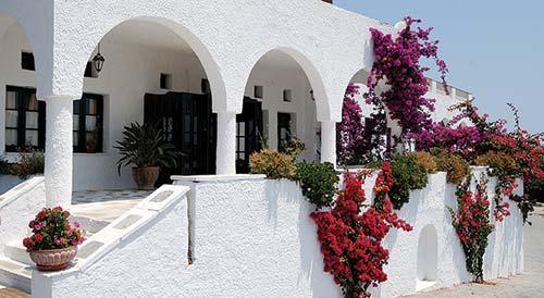 Nostos Village, built in traditional Skiathos style, is located on a pine-covered hillside, which leads out onto a sandy beach. On-site resort amenities include an outdoor swimming pool, pool bar, sun terraces, restaurant, and a beach taverna. Active vacationers also will find a tennis court, scuba diving school, and waterskiing school at the resort.