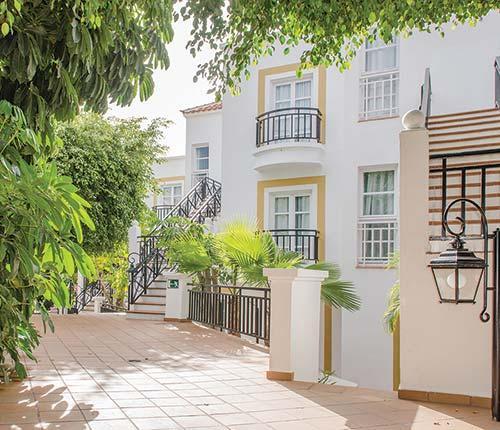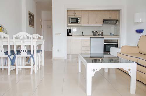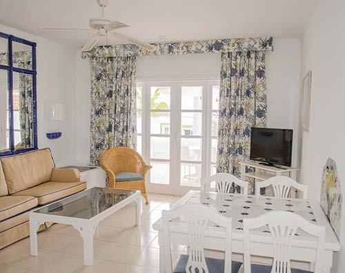 The resort is situated just 220 yards (200 meters) from the beach and near the Playa Fañabe shopping center. The apartments are surrounded by lush flower beds and walkways that wind through the complex to the attractive central swimming pool and whirlpool. Other amenities include a games room, a buffet-style restaurant, a gymnasium, minigolf, hairdressing and beauty salons, a pool bar, the Infinity bar and restaurant with music and à la carte dining, a children's pool, and a playground. Each unit is attractively furnished and has its own patio or balcony.