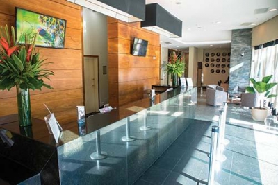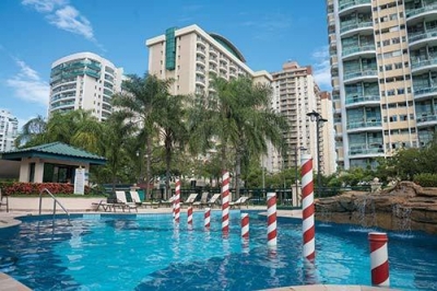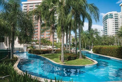 In Rio de Janeiro's Barra da Tijuca neighborhood, Plaza Barra First welcomes guests to spend peaceful and joyful moments in the beautiful swimming pool surrounded by gardens. There is also a sauna, gym, and restaurant on-site. Nearby, play a round at the Olympic Golf Course, browse the shopping mall (located within walking distance of the resort), and visit Reserve Beach, a popular surfing strand.