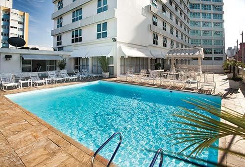 Plaza Blumenau Hotel is located in the center of Blumenau, the city known for hosting the world's second-largest Oktoberfest beer festival. Amenities on-site include a restaurant, bar, swimming pool, fitness center, and free Internet access. Nearby are a variety of restaurants, pubs, shops, and tourist attractions such as Parque Vila Germânica, the venue for Oktoberfest, which is known for its traditional German architecture, flower-filled gardens, and shops selling knitwear, porcelain, and crystal wares.