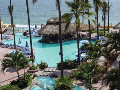 Plaza Pelicanos Grand Beach Resort is located on Banderas Bay. Enjoy a great view of the ocean from the resort's large infinity swimming pool and refresh yourself with a drink from the swim-up bar. Also on-site are a buffet restaurant, Las Pergolas; a specialty restaurant called La Flor de Calabaza; and a kids' club, which is available for children ages 6 to 12. If you wish to see a beautiful sunset, visit the Sky Lounge bar on the rooftop of the property's main building.
