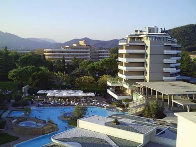 Located in the spa town of Galzignano Terme near Padova, Radisson Blu Resort Terme di Galzignano Hotel Majestic offers panoramic views across the Euganean Hills. It includes a 9-hole golf course with driving range, thermal indoor and outdoor pools, spa, tennis courts, fitness center, and free parking. Rooms are modern and bright, with free Wi-Fi, LCD TV, and Sky channels. The restaurant specializes in modern Mediterranean dishes. Padova Golf Club has 27 holes and is 5 miles (8 kilometers) away, while Venice is less than 40 minutes away by car.