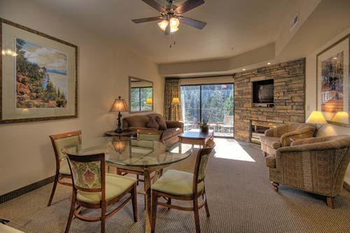 Set amid spectacular Lake Tahoe mountain scenery, Ridge Pointe Resort offers numerous recreational opportunities. Guests have full access to the Ridge Club amenities at The Ridge Tahoe, located just minutes away via complimentary transportation. Each one- and two-bedroom unit has a fully equipped kitchen, in-room whirlpool tub, gas fireplace, Sleep Number bed, flat-screen television with DVD, and a washer/dryer. On-site amenities include a billiard room and barbecues. The Heavenly Ski Resort Stagecoach chairlift is less than a mile (1.6 kilometers) away via resort shuttle. The resort does not have air conditioning.