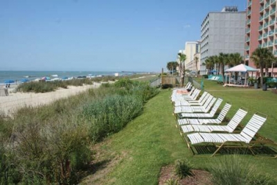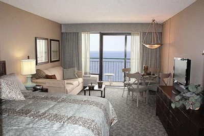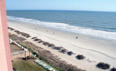 Sand Castle South Resort's quiet location provides a relaxing escape from the hustle and bustle of your daily routine. The property features both studios and one-bedroom units, offering beautiful views from the balconies. Guests enjoy waking to the sound of breaking waves, with the reflection of the sunrise on the ocean.