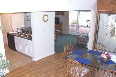 The Neuse River of eastern North Carolina is home to this resort. The villas, with two bedrooms plus a loft, provide an open-air deck which overlooks a private lake. Fully equipped kitchens, a whirlpool, and tastefully decorated living rooms contribute to a pleasant stay. The multi-level villas have interior stairs. On-site amenities include an 18-hole golf course, tennis court, outdoor and indoor swimming pool, sauna, whirlpool, weight room, game room, basketball, volleyball, miniature golf course, and bicycle rentals. The marina can accommodate vessels up to 60 feet (18 meters) in length.