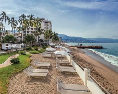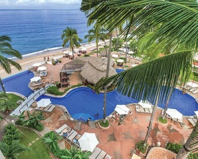 Shell Vacations Club at Plaza Pelicanos Grand Beach Resort is located on Banderas Bay. Enjoy a great view of the ocean from the resort's large infinity swimming pool and refresh yourself with a drink from the swim-up bar. Also on-site are a buffet restaurant, Las Pergolas; a specialty restaurant called La Flor de Calabaza; and a kids' club, which is available for children ages 6 to 12. If you wish to see a beautiful sunset, visit the Sky Lounge bar on the rooftop of the property's main building.