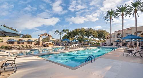 Shell Vacations Club at The Legacy Golf Resort is situated a half-mile (.8 kilometers) from South Mountain amid 280 acres (113 hectares) of the historical Heard Ranch. Accommodations are spacious with Spanish mission-style decor. To complement its 18-hole championship golf course, the resort features country club-style dining at The Grille at the Legacy Golf Club, a heated pool with two whirlpool spas, poolside cabana bar, and children's wading pool. Less than 8 miles (13 kilometers) from Sky Harbor International Airport, the property's proximity to downtown Phoenix, Tempe, and Scottsdale makes it an ideal location for vacationers.