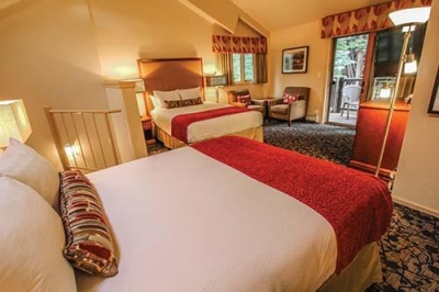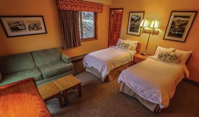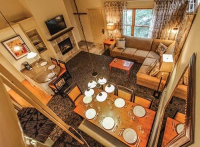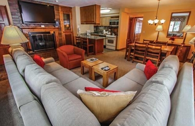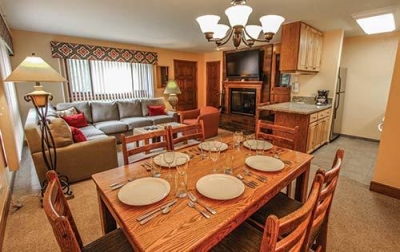 Vail's international village and ski slopes can easily be reached by Streamside's complimentary shuttle service. The Aspen (MEN) and Cedar (MCD) buildings offer one-bedroom, and one-bedroom plus loft accommodations. On-site recreation includes an indoor/outdoor pool, whirlpool spas, sauna, steam room, racquetball courts, playground, and a well-equipped workout facility. These classic buildings offer a rustic charm. Each one's style, decor, and unit size varies. Aspen's exterior and Cedar's interior are shown. Access to all Cedar units is only available by stairs (no elevators). Because of the mild summer climate, guest rooms are not air-conditioned.