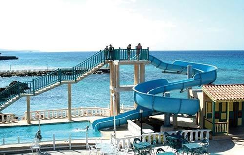 The Franklyn D. Resort & Spa is a boutique, beachfront property that exudes Jamaican hospitality, culture, and flavor. The units are set in a low-rise, Mediterranean-style building surrounded by lush gardens, on a white-sand beach. On-site amenities include four restaurants, a gym, nanny service, free Wi-Fi, pool with 100-foot (30 meters) waterslide, and optional spa and scuba packages. There are activities for all ages, such as arts and crafts and nightly entertainment. ALL-INCLUSIVE/MEAL-PLAN PURCHASE IS MANDATORY; IT MAY BE BASED ON A 7-NIGHT STAY AND MAXIMUM OCCUPANCY.