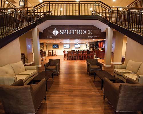 The Galleria at Split Rock provides an array of indoor activities all season long. They include a complete fitness center, indoor pool, racquetball, movie theater, bowling alley, an arcade, ice cream parlor, pizza shop, and the 53,326-square-foot (4,954 square meters) indoor water park with FlowRider and wave pool. On the property there is also a 27-hole championship golf course, an outdoor pool, shuffleboard, bocce ball, softball, three restaurants, great daily activity programs, indoor and outdoor basketball, and indoor and outdoor tennis.