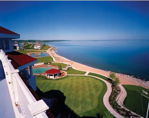 The Inn at Bay Harbor, a Renaissance Golf Resort, is reminiscent of the Victorian-style, turn-of-the-century summer resorts of Lake Michigan. One hundred guest accommodations, including 60 suites with balconies, fireplaces, and handcrafted appointments, grace Lake Michigan's Little Traverse Bay. Forty-five holes of golf, full-service spa and salon, beach club with swimming pool, fire-ring, and hammocks are just a few of the amenities. Casual and fine dining restaurants are available with Lake Michigan, quarry, or golf course views. Guests can explore the Village at Bay Harbor for unique shopping and dining.