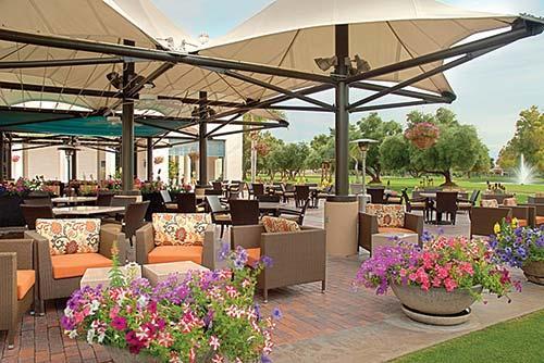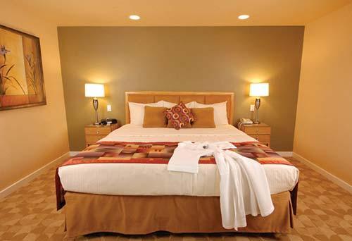 The Orange Tree Interval Ownership Resort includes an 18-hole, PGA-rated golf course renowned for its beauty as well as its challenges for players of all skill levels. The 740-square-foot (69 square meters) guest suites have comfortable living rooms and sleeping areas and amenities including a private patio; whirlpool tub; kitchenette with a refrigerator, toaster, microwave, and coffeemaker; and free Wi-Fi access. Guests can sunbathe around a 75-foot (23 meters) swimming pool, participate in weekly on-site activities, sign up via the concierge for guided tours, and dine on-site at The Grove.